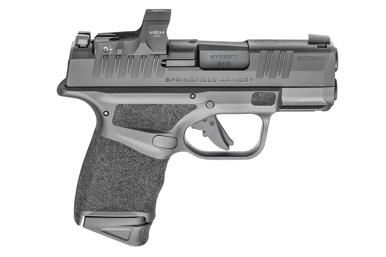 The adaptive grip texture varies in density across the frame, providing traction without abrasion against cover garments. The slide features deep cocking serrations at the front and rear, facilitating press checks with wet or gloved hands. The springfield hellcat micro-compact 9mm pistol with hex wasp red dot ships with the optic pre-installed, torqued, and loctited to the slide.